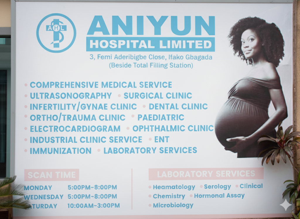 Located in the heart of Gbagada Lagos, ANIYUN Hospitals is a multi-specialist medical facility committed to delivering high-quality healthcare with compassion, professionalism, and excellence.